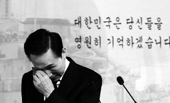 韓國總統李明博談沉沒艦艇 一邊說一邊掉淚(圖)
