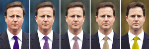 據英國媒體17日報道,人們發現,新當選的英國首相卡梅倫和他的副首相克萊格實在太過相似,簡直像雙胞胎。難怪英國選民們在投票時,越來越難以分清卡梅倫和克萊格了。有人將他們的照片合成了一個人物,還取了個新名字——“克萊格倫”。