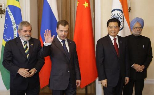 四國(guó)領(lǐng)導(dǎo)人本周四在巴西會(huì)面,基于在一個(gè)新的多極化的國(guó)際格局下,提升四國(guó)間相互依存關(guān)系的廣度和深度,并爭(zhēng)取在世界舞臺(tái)上發(fā)揮更大更積極的作用。