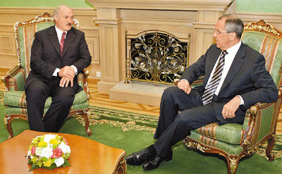 中新網6月23日電 據香港《文匯報》報道,俄羅斯和白俄羅斯的天然氣沖突升級。俄羅斯國營天然氣公司(俄氣)主席米勒22日宣布,鑒于白俄無意償還拖欠的天然氣債務,立刻減少對白俄30%天然氣供應。白俄總統盧卡申科(圖左)不甘示弱,下令關閉通往歐洲的天然氣管道,并與俄國外長拉夫羅夫(圖右)會面時稱,事件已變成“天然氣戰爭”。