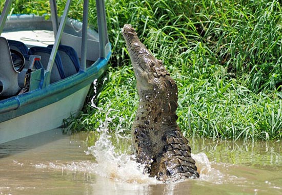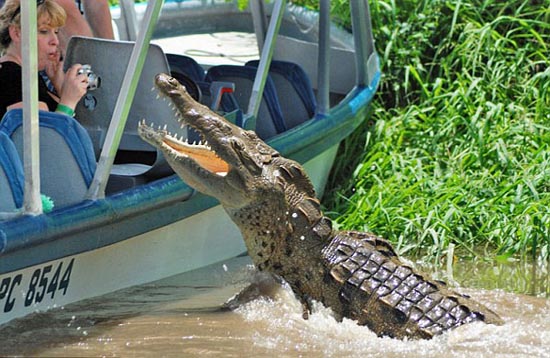 根據保羅的描述,當看到河上那只懶洋洋的鱷魚后,船上的導游就用木棍敲打水面,希望能吸引鱷魚更靠近一些!镑{魚果然隨著木棍游來,越來越近,當大家都還沒轉過神時,那只原本溫順的鱷魚突然躍出水面,張著血盆大口朝那位女游客撲過去!边@時船上的所有游客都尖叫起來,大家都拼命向后退。