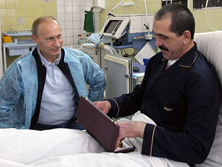 據(jù)俄羅斯新聞網(wǎng)報(bào)道,7月30日俄羅斯總理普京前往莫斯科維什涅夫斯基外科醫(yī)學(xué)研究所探望一個(gè)多月前遇刺后在此療傷的印古什自治共和國總統(tǒng)葉夫庫羅夫,并且贈(zèng)送一把短劍祝賀當(dāng)日滿46周歲的他生日快樂。