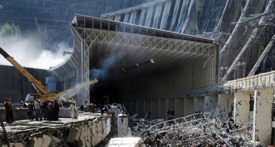 俄羅斯最大水電站薩彥-舒申斯克水電站位于俄西伯利亞地區哈卡斯共和國境內,17日清晨,在工作人員執行維修工作時,一個變壓器爆炸,毀壞了引擎室里的墻壁和天花板,并導致室內水管壓力激增而爆裂,引擎室被水淹沒,造成水災。據悉,水電站大壩本身沒有受損,也沒有對當地居民點造成威脅。