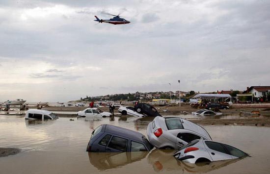 目前,伊斯坦布爾市有些地區(qū)的積水深達(dá)1米,而道路上有些坑洼地區(qū)的積水更深達(dá)2米,兩條分別連接伊斯坦布爾與希臘和保加利亞邊境的交通要道被暫時(shí)封閉,交通受到阻礙。