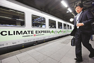 一列載有450名氣候變化大會代表、聯合國官員和非政府組織成員的“氣候快車”,經過10多個小時的行程后,5日晚終于抵達丹麥首都哥本哈根,為今次峰會拉起帷幕。