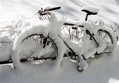 在德國北部漢堡市,一輛自行車被厚厚的大雪覆蓋
