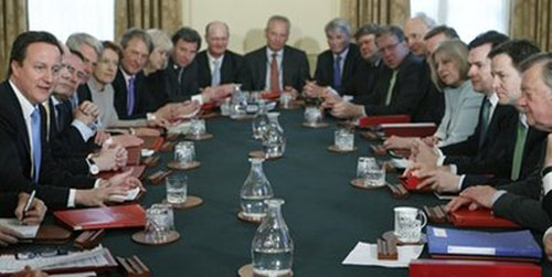中新網5月14日電 綜合外電報道,英國70年來首個聯合政府在13日舉行了就職會議。新首相卡梅倫主持召開了首次內閣會議。