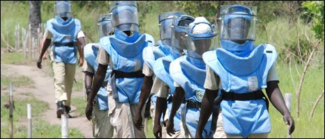 據(jù)俄羅斯《共青團(tuán)真理報》報道,曾經(jīng)飽受戰(zhàn)亂之苦的蘇丹一直在不懈地排除埋放在這個國家土地上的地雷,在蘇丹南部持續(xù)22年的內(nèi)戰(zhàn)使這里的每個村莊都布滿了地雷,因地雷死亡的人數(shù)高達(dá)200萬,現(xiàn)在這一數(shù)字還在上升,因地雷致殘的人數(shù)更是無法計(jì)算。首支活躍在該國的婦女排雷小組以其不怕犧牲甘于奉獻(xiàn)的精神贏得了世人的驚嘆和尊重。