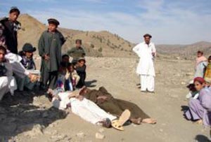 據泰國《曼谷郵報》24日報道,當日,5名男子被發現橫尸米蘭沙阿以南30公里的Kamsarobi村的一條小路旁。死者滿身都是彈孔,死狀凄慘令人震驚。米蘭沙阿是巴基斯坦西北部北瓦濟里斯坦部落區的一個城鎮,當地警官梅赫·沙赫透露:“23日晚,塔利班武裝分子指責5名死者協助美軍無人襲擊塔利班武裝,遂將他們殘忍殺害。在尸體上我們找到一張字條,上面寫著‘這些人正在監視塔利班的動向。任何一個做這樣事情的人都會是這個下場!