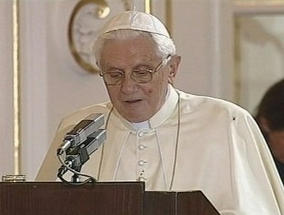 據(jù)臺灣中廣新聞網(wǎng)27日報(bào)道,教皇26日在捷克首都布拉格一個(gè)中世紀(jì)古堡,對捷克政要發(fā)表講話,很多記者盯著會場大屏幕,看教皇講話。