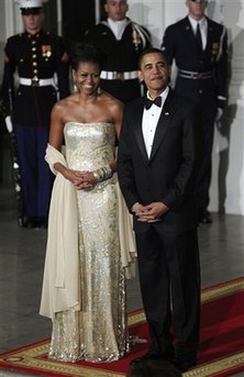 奧巴馬夫人日前穿華麗禮服亮相國(guó)宴