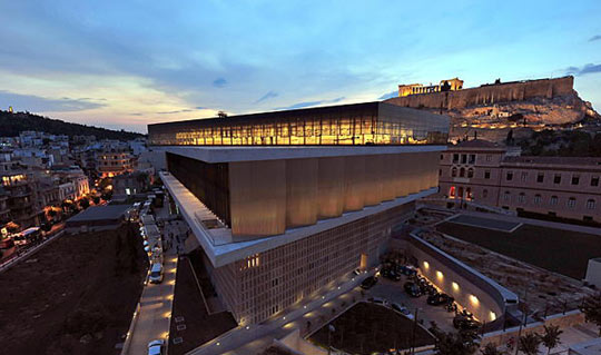 新衛城博物館的設計考慮到如何更好地向外界展示鎮館之寶——巴特農神廟外墻浮雕,新館頂層是根據雅典存留的巴特農神殿而設計,重組雕于2500年前的大理石浮雕,目前流落大英博物館的部分浮雕則以仿制品替代。希臘政府希望借此面積大、設計新的新館,促使英國政府歸還兩塊巴特農神廟外墻浮雕。