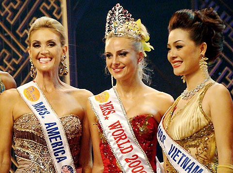 首屆“世界夫人”選美大賽在1985年舉辦。去年的“世界夫人”稱號由烏克蘭夫人納塔利婭·什馬連科娃摘得。今年她特地飛抵越南,為自己的繼任者戴上后冠。