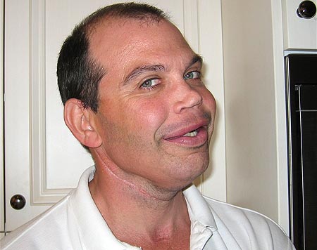 醫(yī)生截取其肋骨和臀骨植入面部,重塑鼻子和下巴;又以腿部動脈挪到頸部,手腕皮膚則移植到下臉部。經(jīng)過連串手術(shù),加萊格一年不能說話,其中兩周更不能飲食。他還要頻頻進(jìn)入氧氣室,以刺激面部新血管生長。