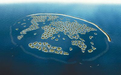 “世界島”是世界上最大的人造海島,用300個形狀模仿世界各大洲的人工島嶼,組成一個微縮版地球,每個島嶼的面積從2300平方米到8360平方米不等。島上設有酒店以及各種休閑旅游設施。4座人工島在太空都清晰可見,堪稱現代“世界第八大奇跡”。