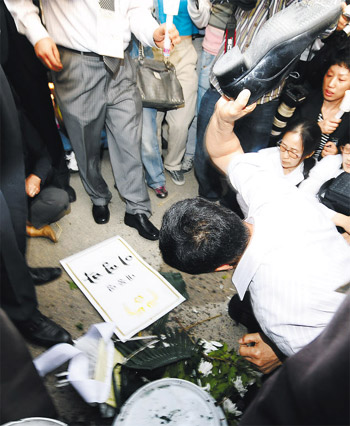 盧武鉉的支持者還在首爾德壽宮大門外設(shè)立祭奠所。為防止悼念活動(dòng)中出現(xiàn)意外,政府在那里部署了防暴警察。