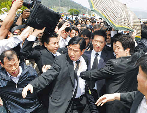 此外,鄭東泳議員夫婦也只能打道回府。“盧愛會(huì)”會(huì)員和村民們對走向村子入口的鄭議員大喊“叛徒”,并阻止他們吊唁。被攔住去路的鄭議員也只能返回。