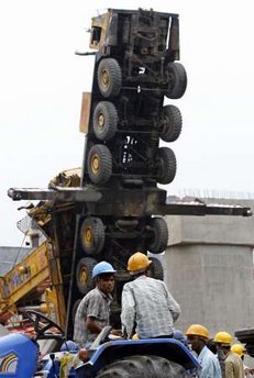 此前一天,該處地鐵施工工地發生高架橋坍塌事故,造成6人死亡、15人受傷。一天后,在該事故清理現場又發生了起重機倒塌事故,造成4人受傷。