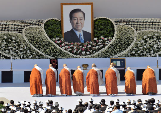 據(jù)韓國《中央日?qǐng)?bào)》報(bào)道,以韓國總統(tǒng)李明博和前總統(tǒng)金泳三為首的主要人士以及駐韓使節(jié)、遺屬等參加遺體告別儀式,預(yù)計(jì)規(guī)模將是史上最大。政府現(xiàn)在邀請(qǐng)了2萬4000人參加遺體告別儀式。