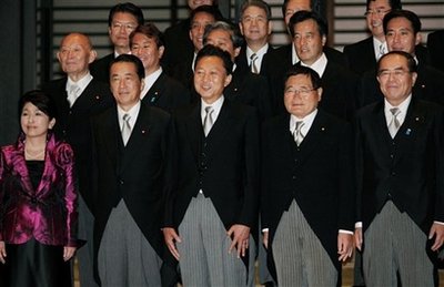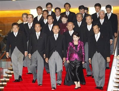 中新網9月17日電 據香港《文匯報》報道,日本新任首相鳩山由紀夫16日公布其內閣成員名單,分別為:金融兼郵政改革大臣─龜井靜香(72歲,國民新黨黨魁)、副首相兼國家戰略大臣─菅直人(62歲)、首相─鳩山由紀夫(62歲) 、少子化兼消費者行政大臣─福島瑞穗(53歲,社民黨黨魁)、外務大臣─岡田克也(56歲)、國家公安委員長─中井洽(67歲)、國土交通大臣─前原誠司(47歲)、財務大臣─藤井裕久(77歲)、內閣官房長官─平野博文(60歲)、防衛大臣─北澤俊美(71歲)、文部科學大臣─川端達夫(64歲)、法務大臣─千葉景子(61歲)、農林水產大臣─赤松廣隆(61歲)、經濟產業大臣─直山鳥 正行(63歲)、總務大臣─原口一博(50歲)、行政刷新會議大臣─仙谷由人(63歲)、環境大臣─小澤銳仁(55歲)、厚生勞動大臣─長妻昭(49歲) 。