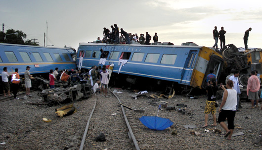 這列火車從泰國(guó)南部Trang省開往曼谷,在距離海邊度假地Hua Hin南部13公里處脫軌。據(jù)警方介紹,有7人當(dāng)場(chǎng)死亡,另外有45人被送往附近兩個(gè)醫(yī)院。泰國(guó)媒體報(bào)道稱,有100多人受傷。