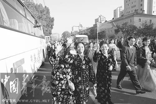 10月6日,平壤街頭,趕去歡送溫家寶總理的市民。本報記者 李建泉攝