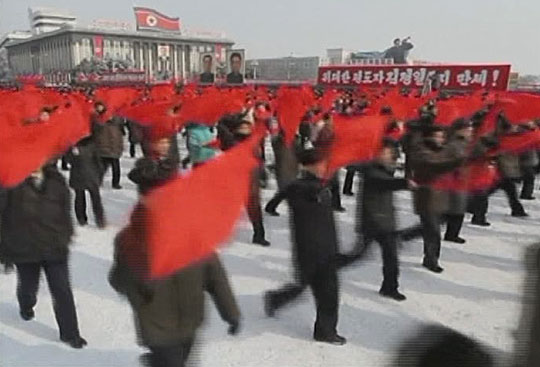 朝鮮平壤市10萬多名群眾2日在金日成廣場舉行集會,表示要堅決貫徹朝鮮三大報聯合發表的元旦社論,集中力量提高人民生活水平。