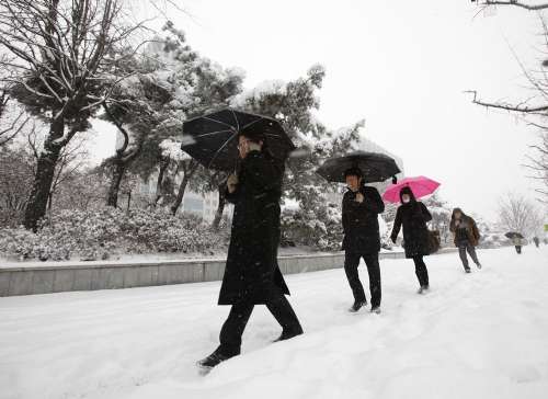 此外,韓國氣象廳還透露,朝鮮也出現了大范圍降雪,在靠近朝韓軍事分界線的海州市,積雪就厚達八厘米。朝鮮其它地方的具體降雪量目前尚不清楚。