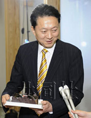 鳩山笑容滿面地說:“對能收到這樣甜蜜的禮物表示感謝。”回顧過去的一年,他又苦笑著說:“雖然自己盡心盡力了,但得不到國民理解的時候只能承受痛苦。”