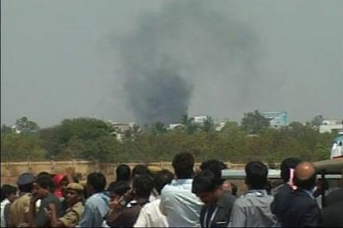 在印度海得拉巴3日開幕的航展上,這架海軍飛機起飛不久就墜入航展現場旁邊一個人口稠密的居民區。一棟3層高的樓房受損嚴重,周圍其它建筑也遭到不同程度損傷。