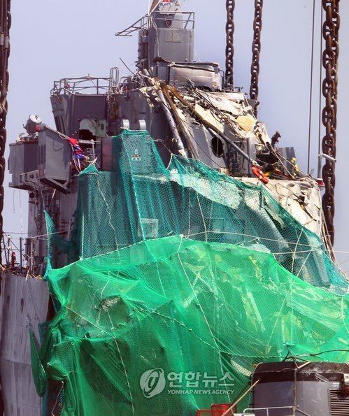 由韓國軍民聯合組成的天安艦打撈組,在沉艦20天和29天后成功打撈了艦尾和艦首。104名官兵當中58名獲得拯救,失蹤6人,40人罹難。