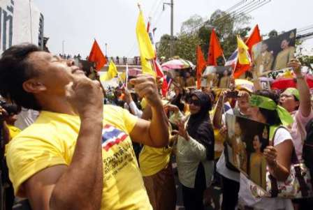 有大約300名親政府的“黃衫軍”周四到總理阿披實坐鎮的曼谷11步兵營外面集會,要求政府采取明確方案,以結束紅衫軍的“非法集會”和“恐怖主義”,并要求軍方運用力量,結束目前的混亂狀態。