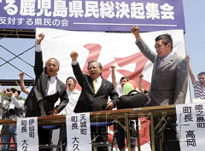 7日與首相鳩山由紀夫會談時拒絕轉移訓練要求的德之島3位町長和鹿兒島縣知事伊藤祐一郎也參加了集會。伊仙町町長大久保明表示:“向首相傳達了堅決反對的民意。”
