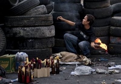 有“紅衫軍”成員將一輛油罐車(chē)駛至一個(gè)主要路口,并燃燒輪胎企圖引爆。目擊者說(shuō),除了商場(chǎng)和酒店林立的商業(yè)區(qū)外,市內(nèi)另一處地區(qū)也發(fā)生流血事件。有三幢商業(yè)大廈著火焚燒。當(dāng)局周一開(kāi)始局部封鎖市內(nèi)著名游客區(qū)蘇坤蔚路。