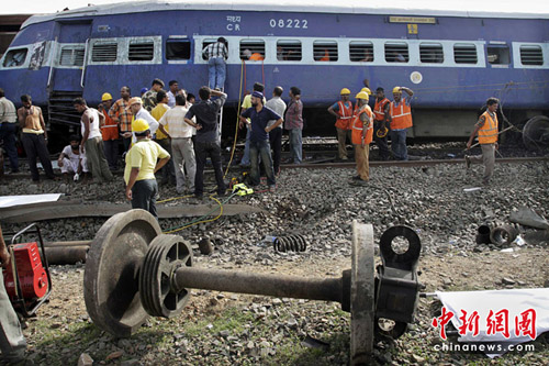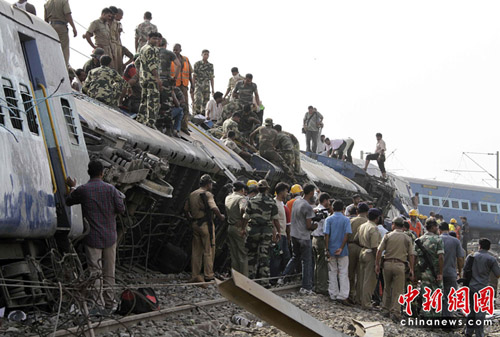 中新網5月28日電 綜合報道 當地時間28日凌晨1時30分,在印度東部西孟加拉邦西米德納布爾附近,一輛高速行駛的旅客列車遭襲致13節車廂脫軌,其中3節車廂又與對面駛來的貨運列車相撞。目前為止,事故至少造成65人死亡,200多人受傷。