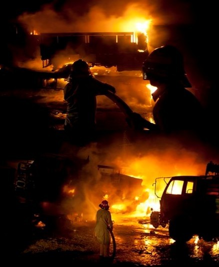 武裝分子先使用槍支及手榴彈等武器,對車隊開火,打死7人,造成另外7人受傷。隨后,武裝分子縱火燒毀車輛,一共有10多輛車被付之一炬。目擊者稱,大約有20個集裝箱起火燃燒。由于輪胎燃燒,油罐起火,現(xiàn)場發(fā)生一系列爆炸。