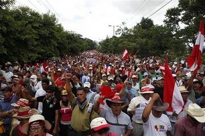 洪都拉斯6月28日發(fā)生軍事政變。數(shù)百名全副武裝的軍人強行扣押并驅(qū)逐了總統(tǒng)塞拉亞。洪都拉斯議會議長米切萊蒂同一天就任臨時總統(tǒng)。但塞拉亞本人表示自己沒有辭職,將以總統(tǒng)身份重返洪都拉斯。此后,該國爆發(fā)大規(guī)模游行示威和沖突,政局陷入動蕩。