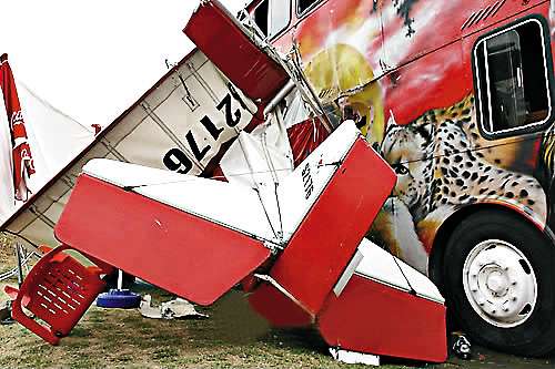 事發于首爾西面的仁川,當時正舉行“2009仁川世界城市慶典”;顒庸P表示,該架飛機當時正為另一個活動飛行,突然撞落慶典上一架展覽中的巴士。警方稱,天上布滿裝飾風箏可能是令飛機墜毀的原因。機上兩名機師隨即送院,其中一人不治,另一人輕傷。