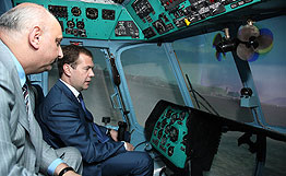 Tranzas公司方面向梅德韋杰夫展示了為專業飛行員制造的高級訓練臺。它能夠模擬在俄羅斯最受歡迎的米格-8型直升機的飛行。公司學習部門的主任葉甫蓋尼·阿巴庫莫夫和梅德韋杰夫一起坐在米格-8直升機的方向盤前,在圣彼得堡阿德列爾機場最不利的條件下進行了一次駕駛。