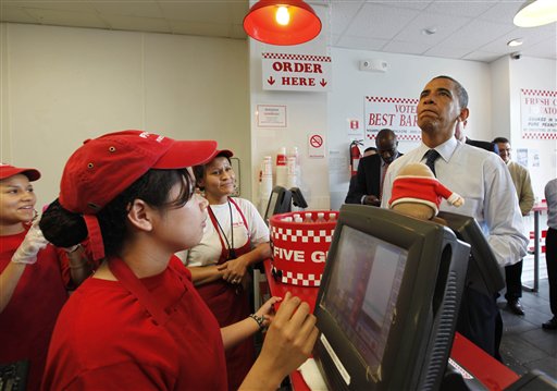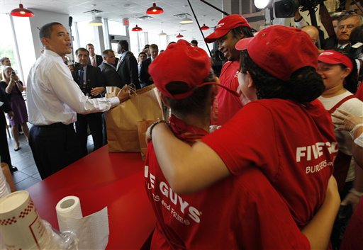 據《星島日報》報道,奧巴馬到華盛頓一家連鎖快餐店買漢堡包,期間又與市民握手問好,他點了芝士漢堡包及薯條作午餐,還請下屬進食,以及隨行拍攝的電視臺職員。在排隊期間,奧巴馬吃了點零食,與其他顧客聊天,也有人要求與他拍照留念。