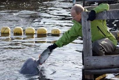除了展現(xiàn)男子氣概,普京近年亦用心營(yíng)造柔情一面。俄政府發(fā)聲明表示,普京7月31日到了俄羅斯遠(yuǎn)東地區(qū),穿起潛水衣,在太平洋的契卡洛夫島為一條白鯨裝上衛(wèi)星追蹤器。這是一個(gè)白鯨遷徙模式研究的一部分。普京當(dāng)時(shí)問:“她不會(huì)咬人吧?”他其后更幫手喂飼其他白鯨。普京當(dāng)日又到700公里外的哈巴羅夫斯克市,出席一條新天然氣輸氣管的啟用儀式。