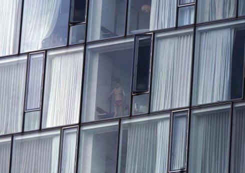在美國紐約市新近開放的High Line公園內,矗立著Standard Hotel酒店, 該酒店房間面朝公園的一面被建造為落地玻璃窗,方便房客俯瞰公園景色,當然,酒店外的人也能透過玻璃窗清楚地看到房間里的景象。然而,許多房客不知出于什么原因,經常沒有拉上窗簾,就進行各種私人活動,將一些裸露、猥褻、甚至粗野的行為都完整地暴露在公眾的視線當中,讓公園游客們大飽眼福。