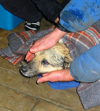 這只小狗第一次被人發現是在波蘭的格魯瓊茲(Grudziadz),河流上游40英里處。當時當地的消防人員試圖營救它,但由于它在距河岸甚遠處漂流,河中冰層又很厚,如果派出救援艇,會有翻船的危險,最終救援人員只好放棄了營救。