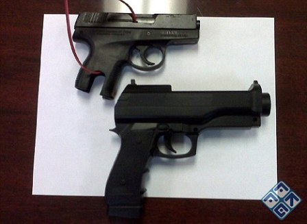 圖中可見游戲手柄(下)與真手槍(上)外形十分相似