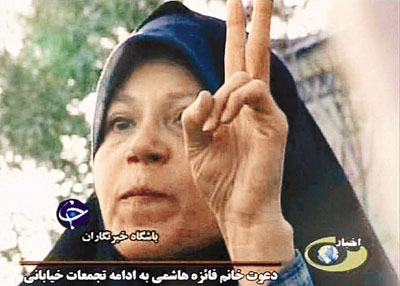前總統拉夫桑賈尼46歲的女兒哈希米和4名親戚出席了示威活動,被當局扣押,當局解釋是要保護他們免受暴民襲擊。一名官員表示,他們已被移送至最近的軍營里,直至動亂浪潮平息為止。哈希米上周二在國營電視臺大樓外,向穆薩維的支持者發表講話。拉夫桑賈尼是穆薩維的支持者,曾公開表示不滿內賈德。哈希米被捕讓人感到意外,因為最高精神領袖哈梅內伊前天才贊揚拉夫桑賈尼為伊朗革命的“建筑師”。