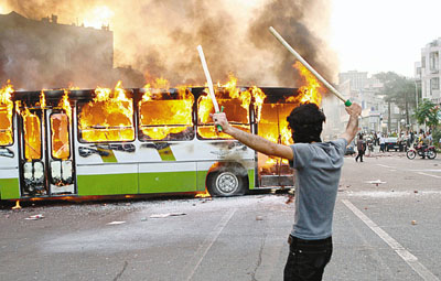 他說(shuō)示威隊(duì)伍約1000人,后來(lái)大批駕駛電單車的軍警人員逼近,毆打他們,人群四散躲避之際,民兵卻帶著棍棒在小巷里埋伏。示威者霎時(shí)間無(wú)路可退,幸得巷里人家開門營(yíng)救。當(dāng)示威者遠(yuǎn)離警察和民兵后,便高呼“伊朗已變成巴勒斯坦”等口號(hào),駛經(jīng)的汽車都響號(hào),公共汽車乘客揮手支持。