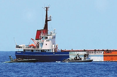 以軍艦艇攔截“自由加沙運動”的救援船。