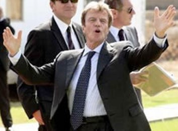 什么場合,這么熱鬧?攝影機圍著一圈賓客猛拍,想里頭一定有大人物。原來搶新郎新娘風采的,就是這位西裝筆挺的法國外長庫什內(nèi)(見圖)。