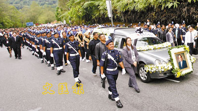 中新網10月30日電 馬來西亞一代賭王林梧桐29日早上10點出殯,安葬在梧桐墓園,賭王靈車車牌為WLP111。