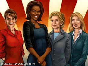 設立在華盛頓的藍水(Bluewater)出版社本月11日出版了一系列以描寫國務卿希拉里和阿拉斯加州州長薩拉·佩琳的漫畫書。據該出版社表示,目前每個分銷商都已經銷售了超過7500份。